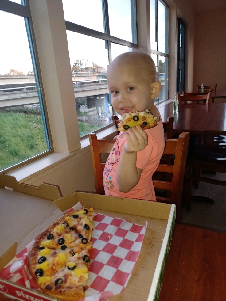 Now, due to her weakened immune system, Abby is not able to attend school or be around others. She spends 2-4 days a week at the Children’s Hospital, one hour away from her home. There, she receives IV Chemo medication and is regularly put under anesthesia to get chemo injected into her spinal column.