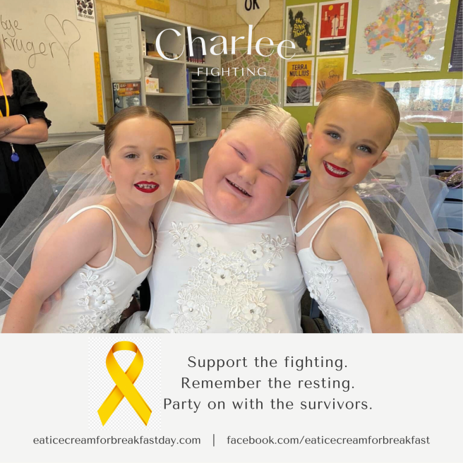 On February 18th, eat a scoop to support 8 year old Charlee who has been battling brain cancer since she was 2 years old. #childhoodcancer, because #kidsgetcancertoo. @eaticecreamday