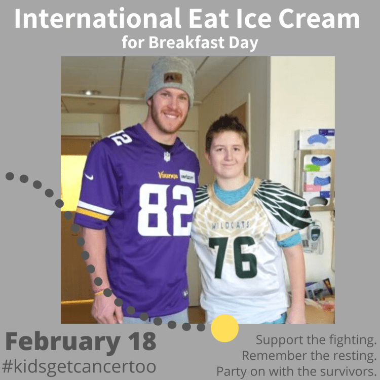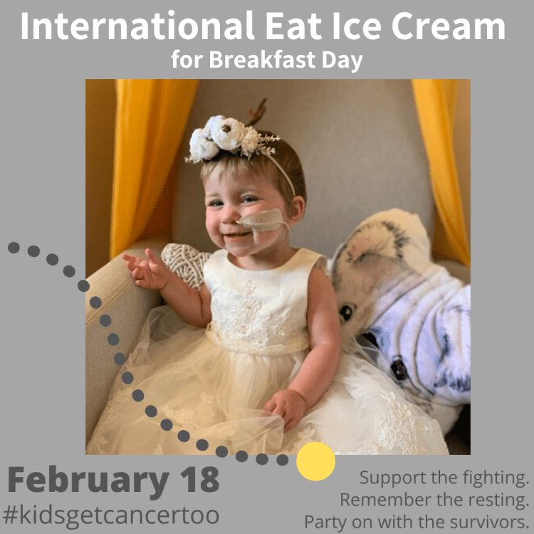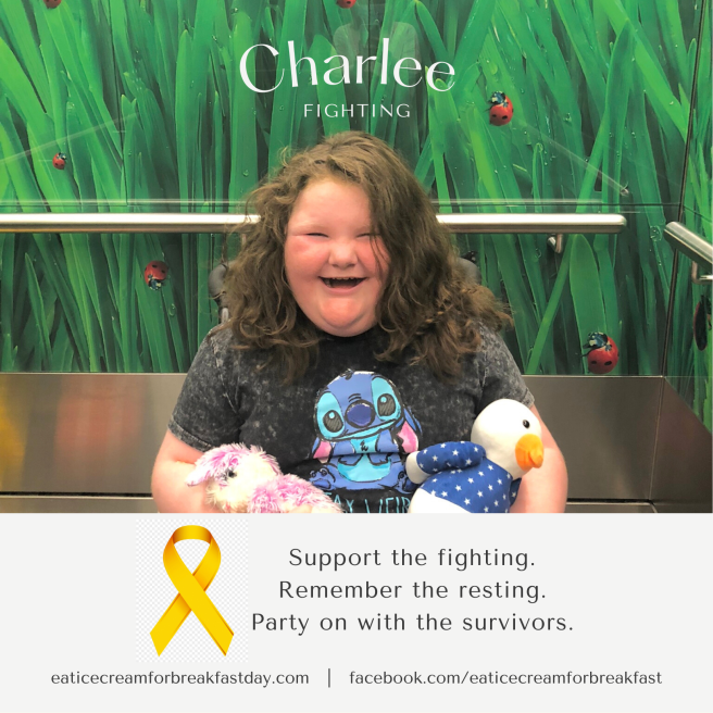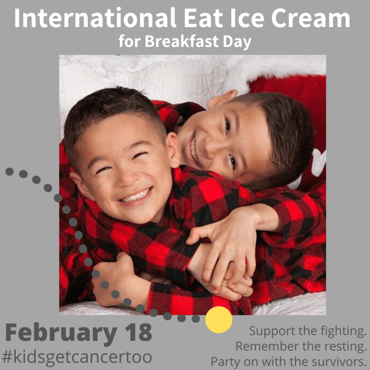 THANK YOU for being a part of encouraging those whose lives have been impacted by childhood cancer by participating in Eat Ice Cream for Breakfast Day. These families need it more than there are words to describe, and having their fight acknowledged, even in this small and silly way, means a lot to them!