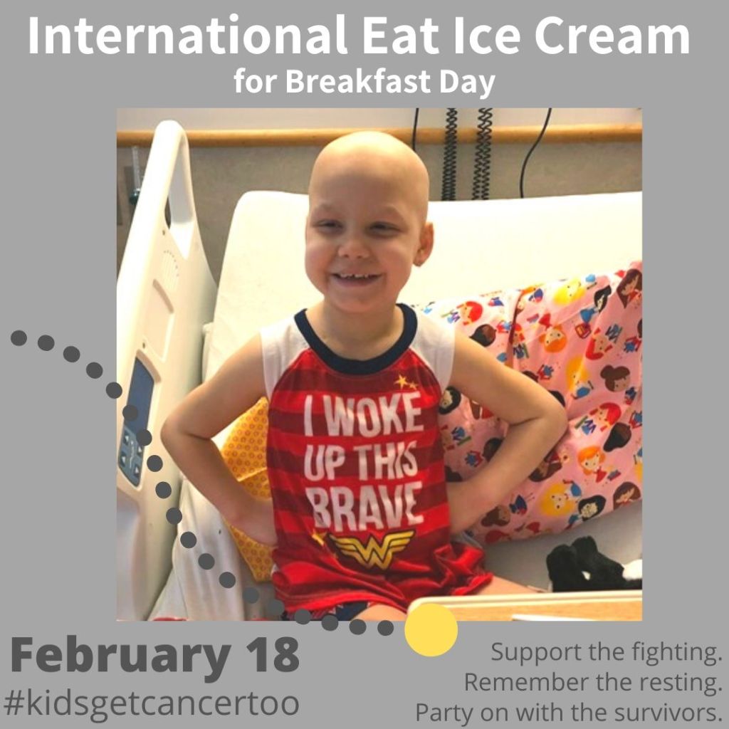 On February 18th, I will eat a scoop or two of #icecreamforbreakfast to celebrate with Reese because #kidsgetcancertoo.